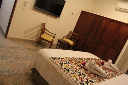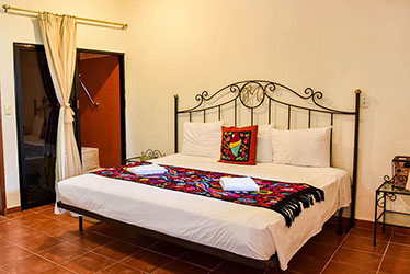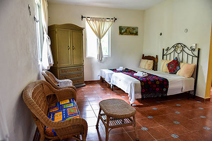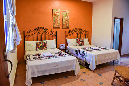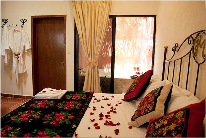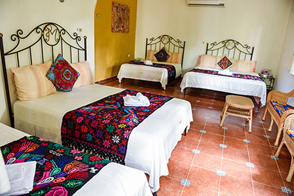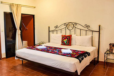 13 Habitaciones disponibles cuyo nombre significa en lengua Maya "Manos Mágicas" habitación con cama king size, o en versión con 2 camas matrimoniales ideal para 2 adultos y 2 menores decorada con y habilitada con una tina artesanal para relajarse y disfrutar a final del día.