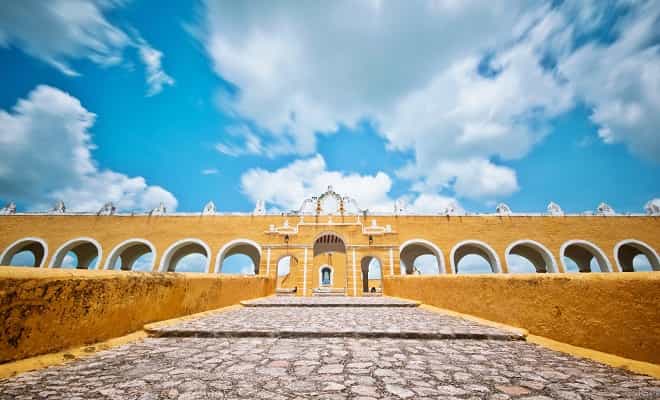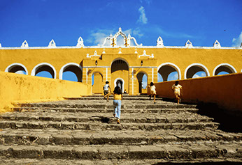 Ubicada a aproximadamente 40 minutos de Mérida, Izamal conocida como “La Ciudad de los cerros” es un testimonio viviente de la cultura Maya, en ella se han encontrado numerosos vestigio de esta cultura entre los que destacan 5 grandes pirámides.